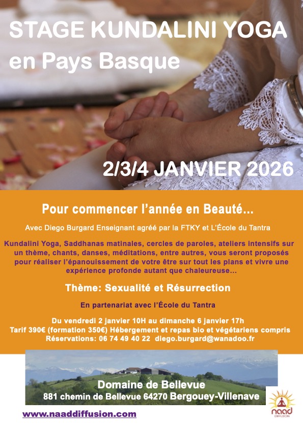Guérison, transformation et/ou libération, en tout cas des occasions exceptionnelles de reprendre la main sur votre destinée vous sont offertes, comme les stages de Tantra Rencontre, les stages de Kundalini Yoga, mais aussi les Satsong, concert de mantras dans la joie du Coeur, ou les ateliers Tantra Danse. Donc voici les rendez-vous essentiels de ce dernier trimestre 2025: Le 22 novembre un Satsong, concert de mantras, aura lieu à la Villa Ajna, à 20h, participation 20€. Enfin, nous commencerons l’année Beauté avec le stage Kundalini Yoga de trois jours qui se déroulera du 2 au4 janvier 2026. Bienvenue à tous! |